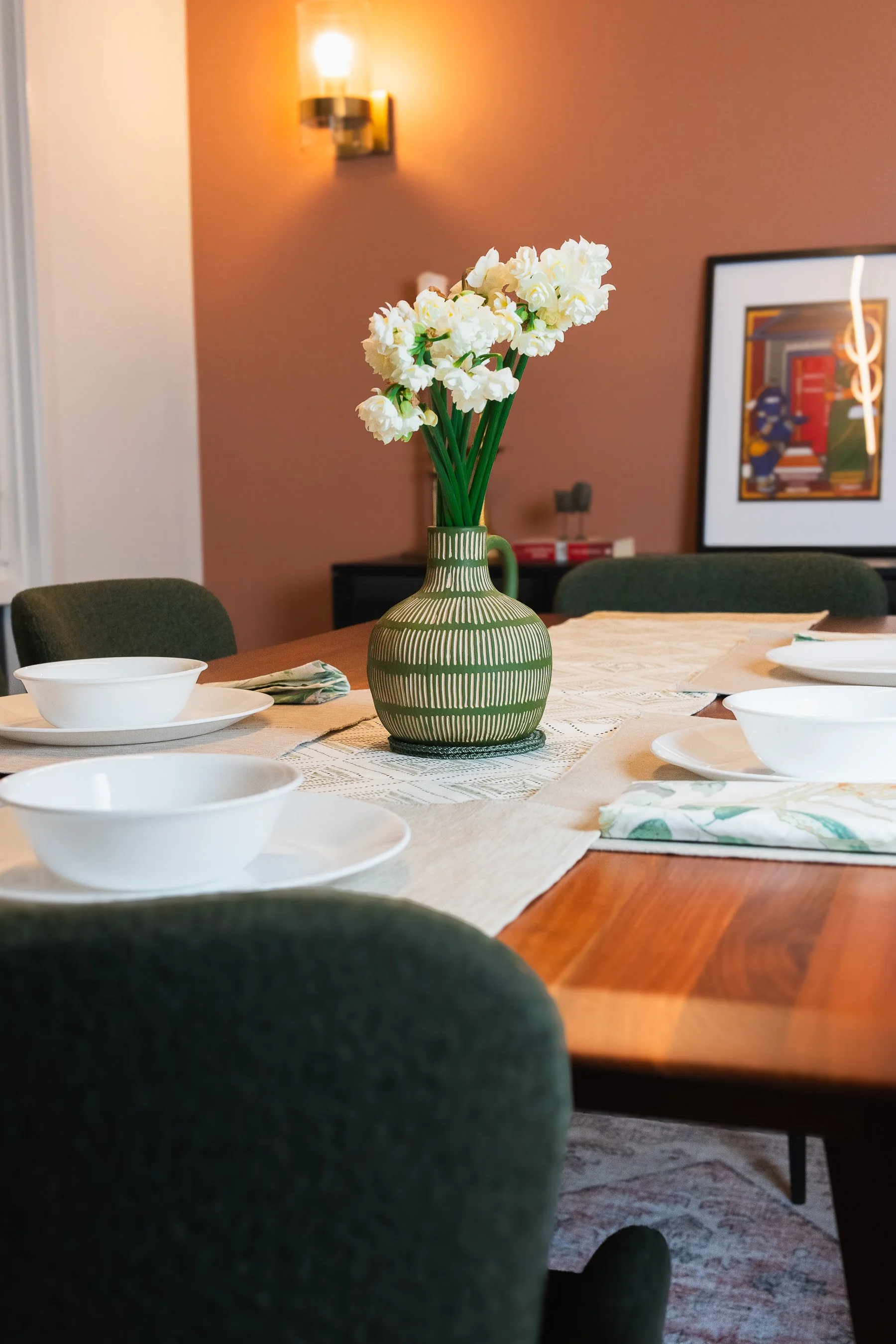 Nestled in an idyllic lush green suburb of Greensborough, this 40-year-old house brimming with character and charm, offered a unique canvas for our creative vision. Drawing inspiration from the picturesque views of the Plenty Gorge Parklands that grace every window, Studio Renee curated a palette of earthy tones and organic textures to evoke a sense of tranquility and connection with nature. The theme for this project was to bring the outdoors in, and embracing the natural beauty of the surroundings and integrating it into every aspect of the design.